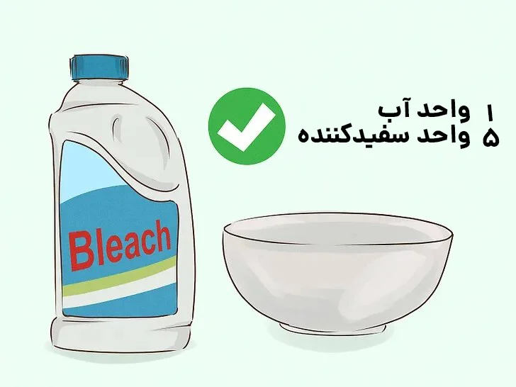 - یک واحد سفید کننده را با پنج واحد آب رقیق کنید. بهتر است از یک ظرف کوچک برای مخلوط کردن استفاده نمایید. استفاده بیش از حد سفید کننده می تواند رنگ کفش های شما را زرد کند.